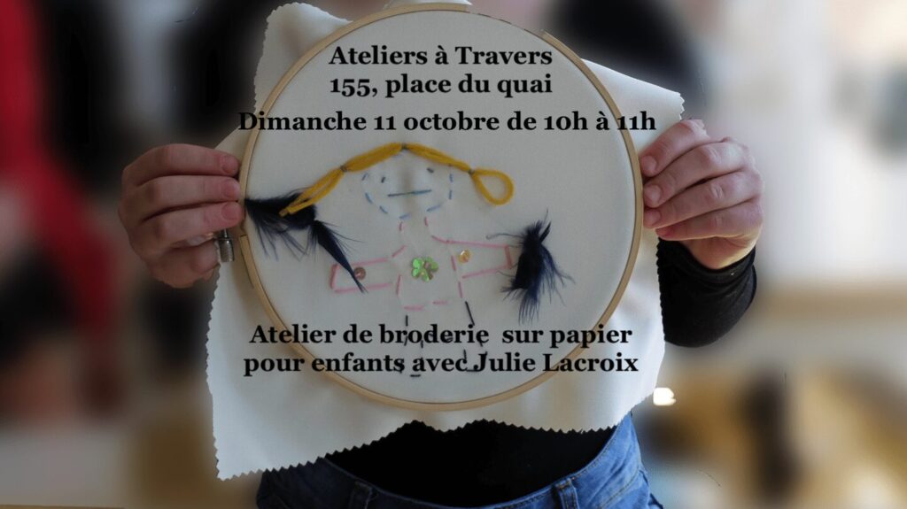 Atelier de broderie sur papier pour enfant avec Julie Lacroix aux Ateliers à Travers