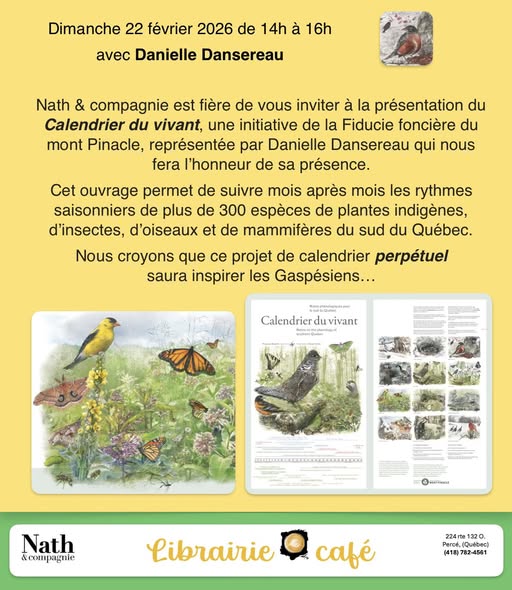 Présentation du calendrier du vivant avec Danielle Dansereau à la libraire Nath et Cie