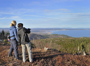 Le sentier des Montagnes, partant de l’Anse-à-Beaufils, ce sentier longe le ruisseau de la Côte de la Fourche jusqu’à la route d’Irlande, et de là l’ascension commence. Vous découvrirez des vues à nulle autre pareille. De cime en cime vous vous dirigerez vers les montagnes ceinturant le village de Percé, vous croiserez quelques pentes abruptes en montée et en descente. La prudence est de mise. Le départ de ce sentier peut également se faire à partir du village de Percé.